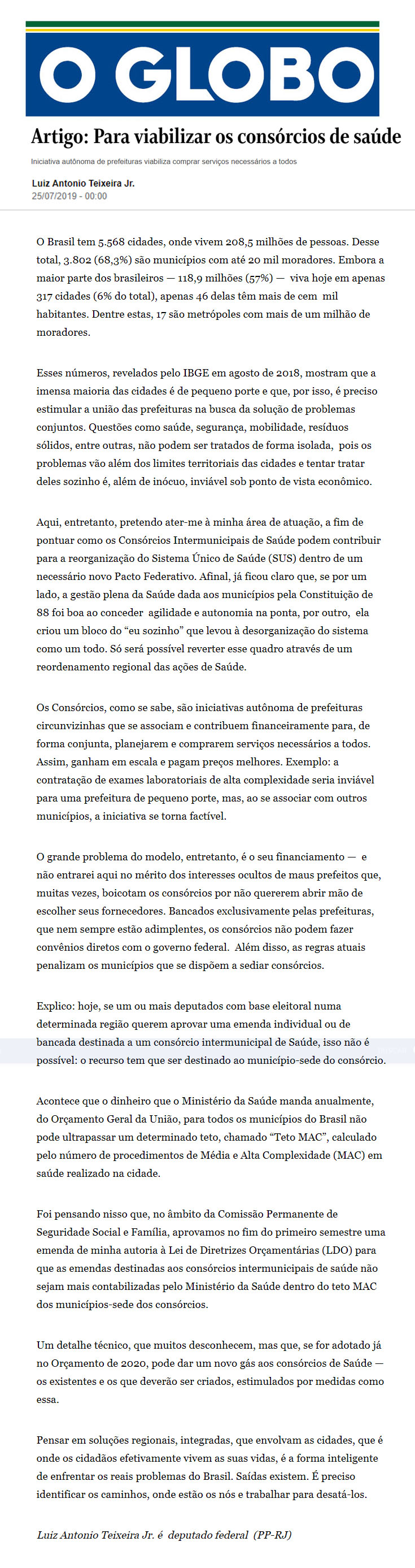 Artigo O Globo – Consórcios Intermunicipais de Saúde