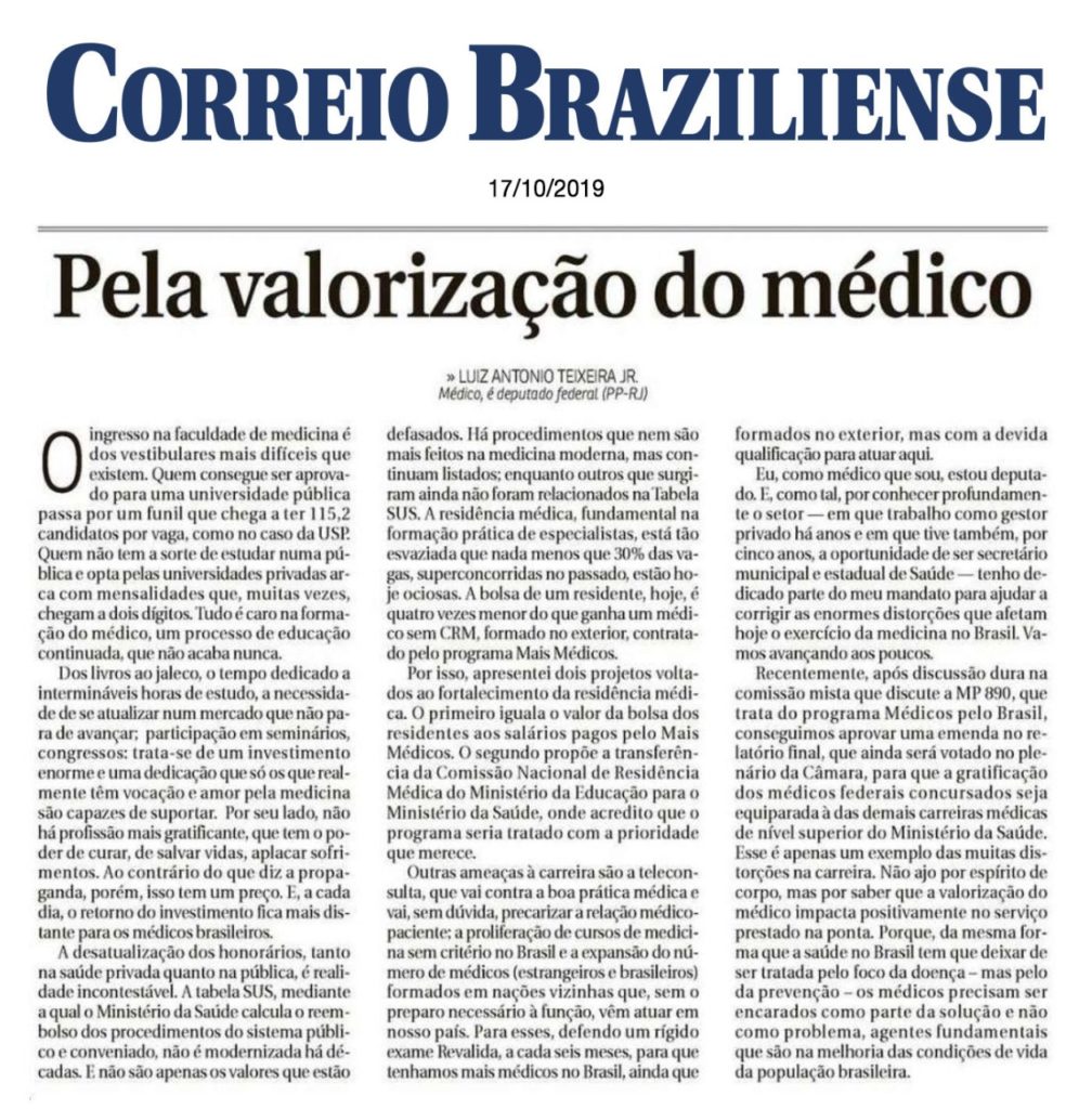 Em artigo publicado pelo jornal Correio Braziliense, o deputado Dr. Luizinho explica o trabalho que vem desenvolvendo na Câmara de Deputados em defesa da prática da medicina e dos médicos.